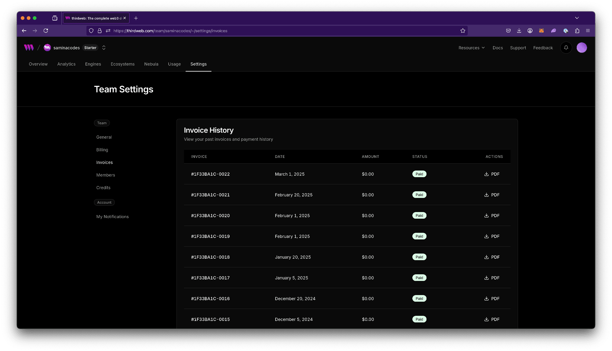 • View or download past invoices to see breakdown by plan and usage.